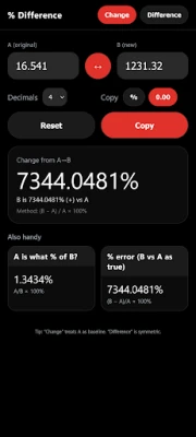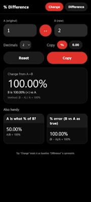 Easily calculate percent change and difference with a simple, modern tool.