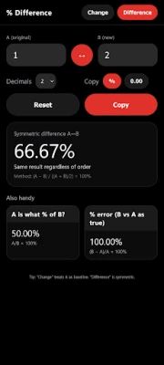 Percent Difference Calculator helps you compare two numbers instantly: