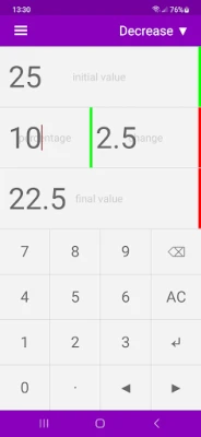 • Easy to use interface allows the calculation of percentage changes.