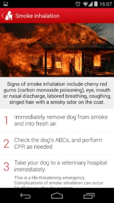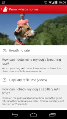 • Learn first aid steps for over 25 common pet situations through a combination of text, video and images, in addition to identifying common toxic substances.