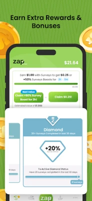 Get access to extra surveys, extra rewards and more! Earn real money from taking surveys, build up a login streak, and redeem your rewards faster than ever. Share your opinion with daily poll options, and continue earning real cash rewards with Zap Surveys.